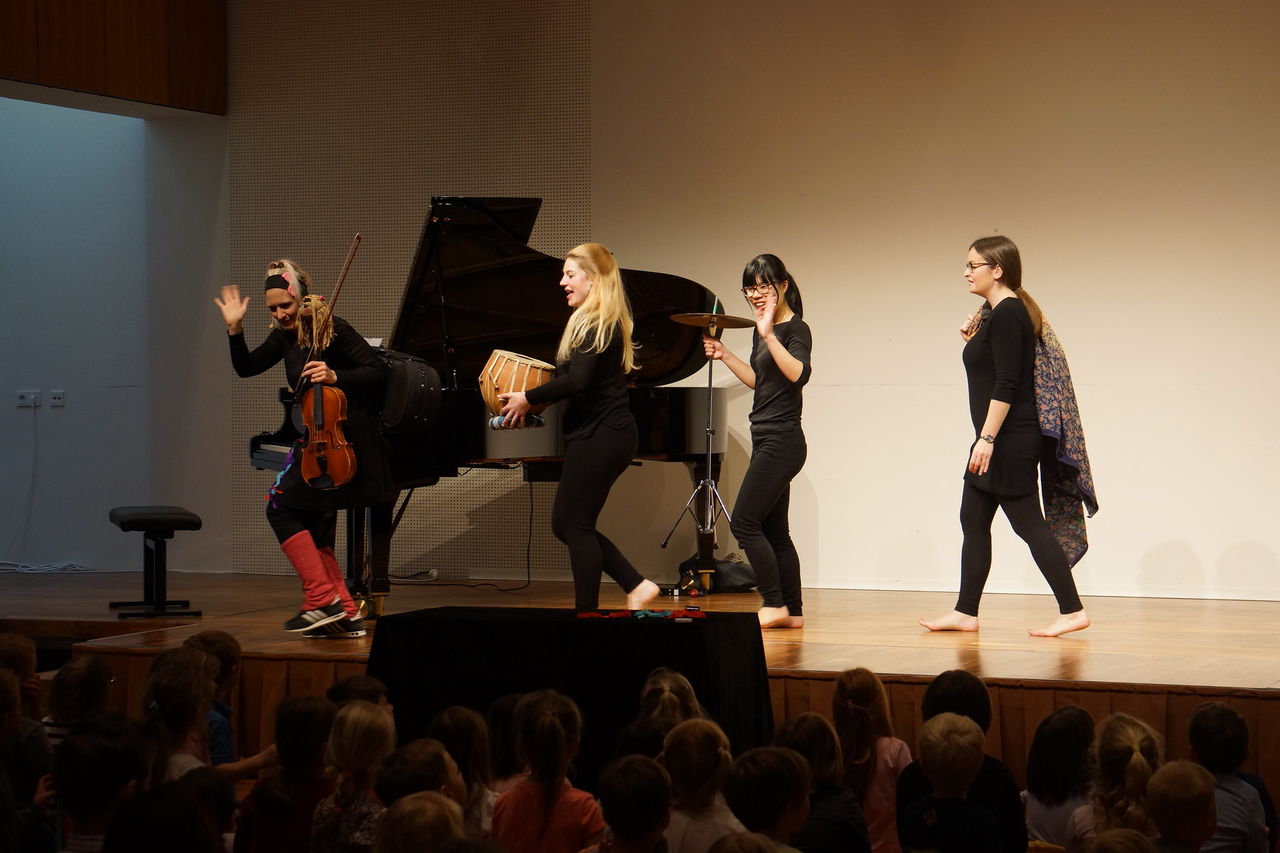 今回の対象年齢は幼稚園の子供達でしたが、私たちがいつも心掛けているのは対象が誰であろうと、”わざと子供らしく”、”子供のためだけにわかりやすく”するのではなく、舞台に立つ以上いつでも芸術家、音楽家である事を意識しています。それは言葉がまだわからない赤ちゃんの前であっても、音楽愛好家の前であっても一緒です。